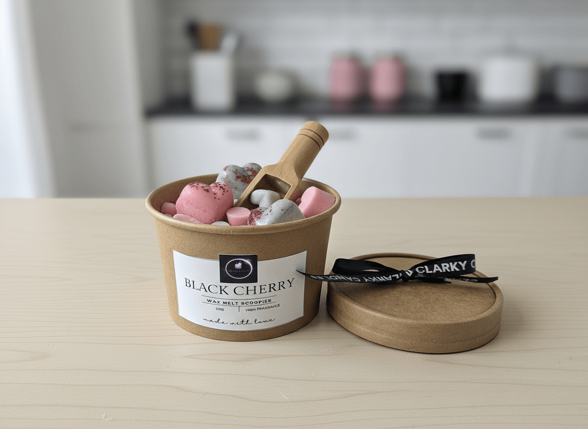 Immerse your home in the luscious scent of Black Cherry with our 120g Wax Melt Scoopies. Handmade in Northampton, UK, these scoopable soy wax melts deliver a rich, juicy cherry fragrance—perfect for creating a warm, inviting atmosphere any time of year.