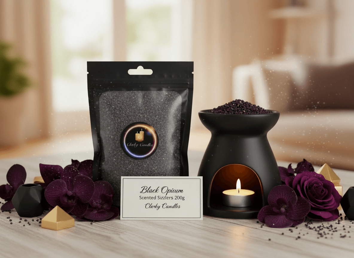 Fill your home with a bold, cosy fragrance using our Black Opium Scented Sizzlers (Simmering Granules) 200g. Handmade in Northampton, UK, these highly fragranced granules are designed for use in a wax burner (tea light or electric) to deliver a strong, long-lasting scent throw — without wax residue.